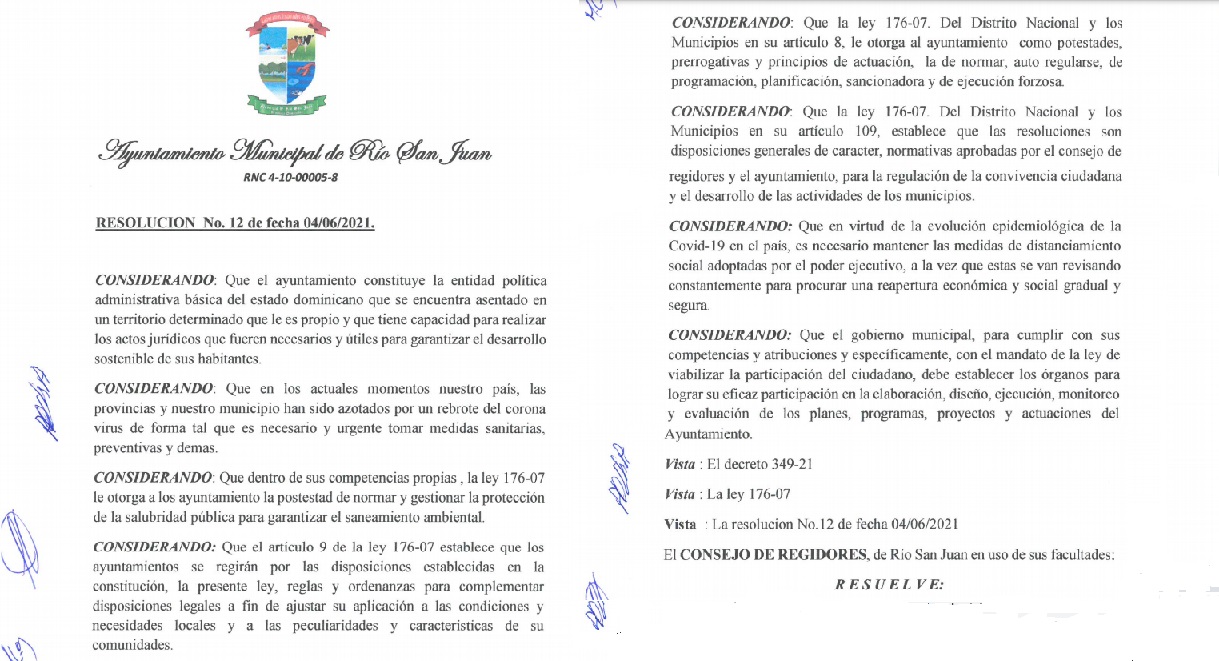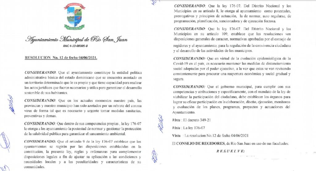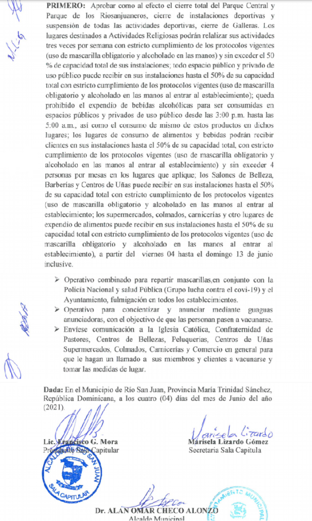 Río San Juan.- La Alcaldía Municipal anunció este viernes el cierre total de los parques Central y de los Riosanjuaneros, instalaciones deportivas, galleras así como la suspensión de todas las actividades deportivas, como forma de combatir del rebrote del coronavirus en este municipio.