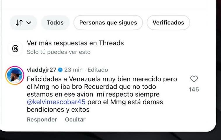 Mientras que Vladdy Jr., en su mensaje también resalto el respeto que le tiene al exjugador “Mi respeto siempre, bendiciones y éxito», priorizando la hermandad deportiva.