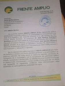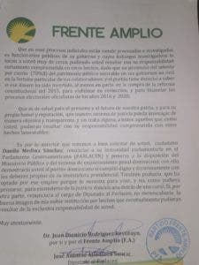 Considera el Frente Amplio que de esa forma, Medina «demostraría al pueblo dominicano si cumplió digna y decorosamente con los deberes propios de su investidura presidencial».