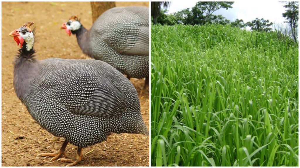La gallina Guinea, mejor conocida como Guinea. A la derecha, Yerba de Guinea