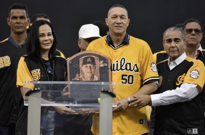 En un abarrotado estadio que fue testigo de grandes hazañas de Tavárez, las Águilas reconocieron el orgullo con que el “Muñeco” vistió la franela número 50.