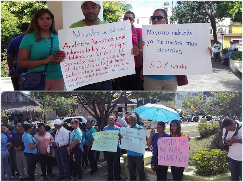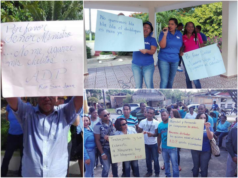 Río San juan.- La asociación Dominicana de Profesores ADP realizó un paro este martes en el  parque municipal exigiendo al ministro de Educación Andrés Navarro el desbloqueo de maestros que no han cobrado por más de tres meses.